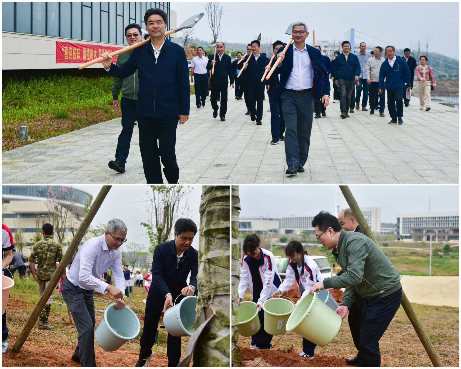 “十年树木,百年树人,树人树木,相得益彰。”在植树活动中,胡钦太寄语同学们树植于祖国广袤沃土,播撒青春种子,成为托起国家期望的“参天大树”;寄语老师们努力提升教学科研创新能力,增长传道授业本领,成为党和人民满意的“四有”好老师;最后对校友们长期以来支持学校的发展表示感谢,并希望校友们常回校共叙情谊,共谋发展。